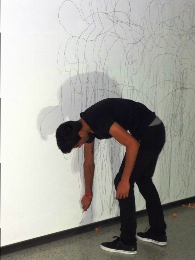 Luis Miguel Mendoza (Barranquilla, 1991). Su propuesta reflexiona acerca de la estética popular de los pandilleros del barrio La Paz de Barranquilla, factor que permite al artista apropiarse a través del dibujo de elementos y materiales visuales que identifican esta subcultura urbana popular, invitando así a una reflexión sobre el diario vivir que transcurre en estas comunidades.