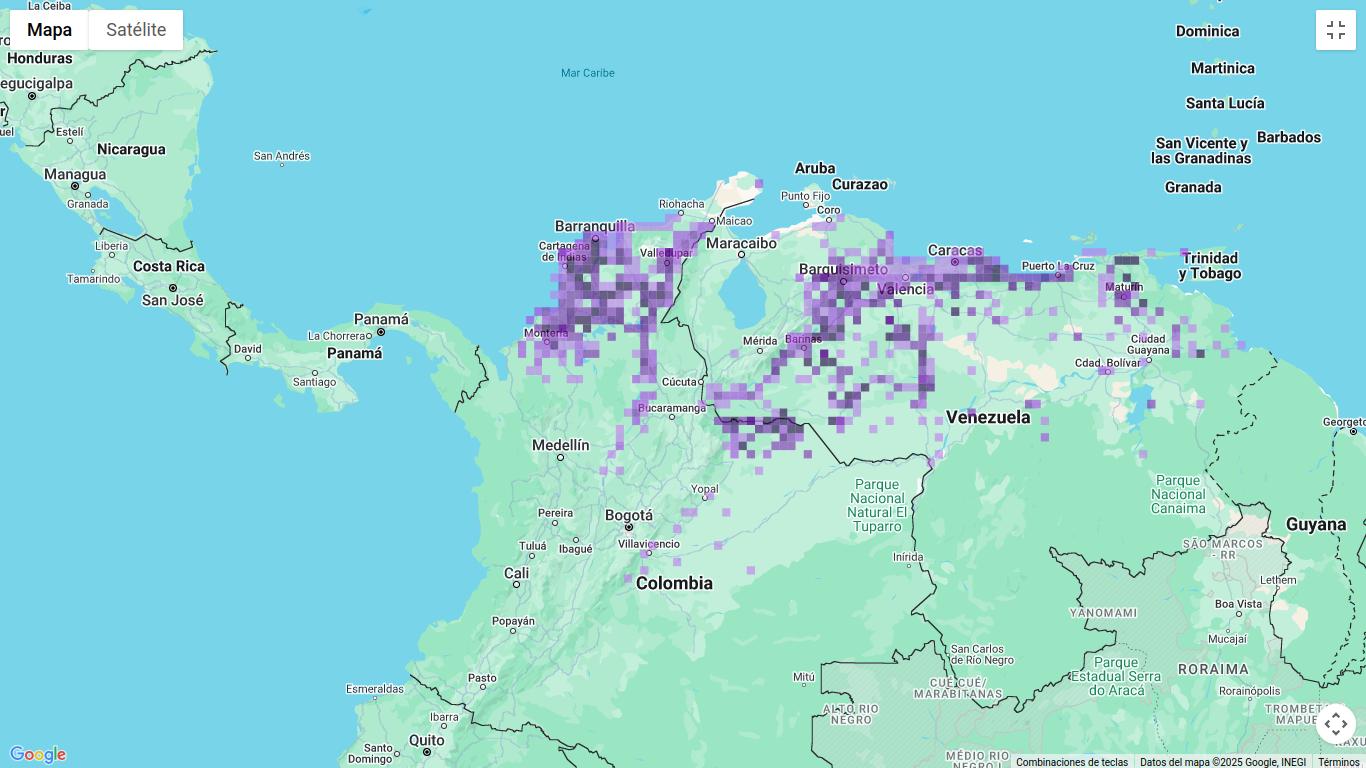 Distribución del cucarachero habado en Colombia y Venezuela.