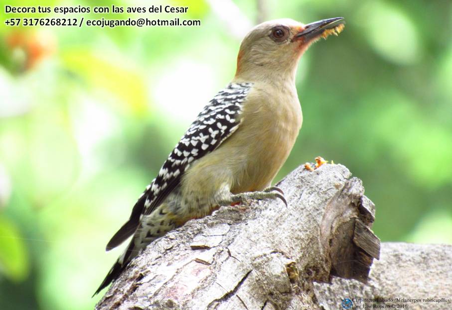 Tienen un lomo barrado blanco con negro, con las alas y los muslos blancos; rabadilla blanca y cola negra con algo de blanco y las partes inferiores pardo pálidos. Presenta dimorfismo sexual, el macho tiene un parche de corona roja en la nuca; la hembra tiene una corona color beige y la nuca pálida. Los juveniles son más pálidos en las áreas de cabeza y cuello. M. r. terricolor de la isla de Tobago es más grande y con el pecho más oscuro que la raza nominal.