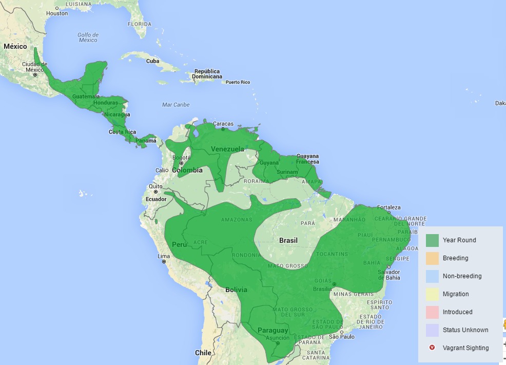 Hábitat: el batará barrado es un ave canora dimórfica, de mediano tamaño y población abundante en un ampli rango que se extiende desde México hasta Argentina por debajo de 1500 msnm en matorrales y límites boscosos, así como jardines y áreas rurales habitadas.