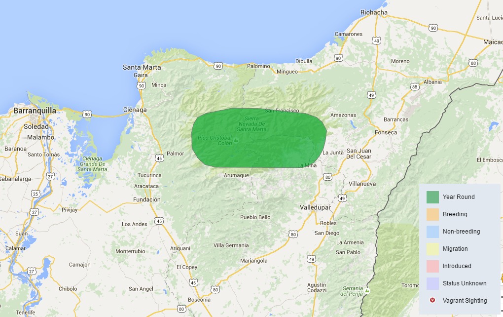 Nombres comunes: periquito de Santa Marta, cotorro serrano.